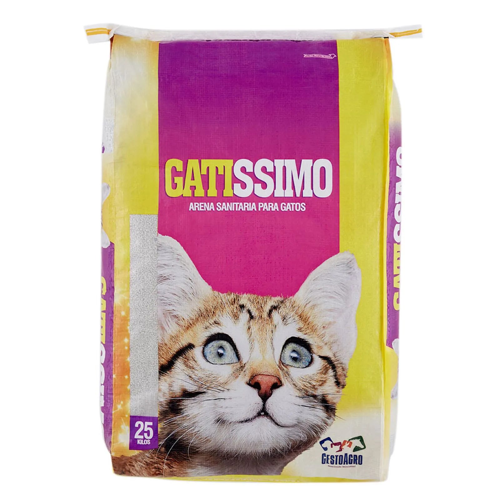 - Vierta Gatissimo en la bandeja sanitaria de su gato hasta alcanzar una altura de 8 a 10 cm.