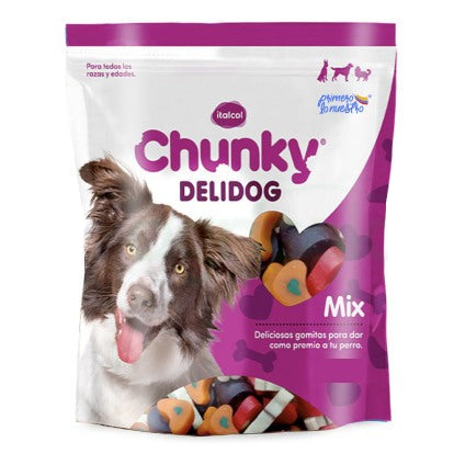 Con este alimento para perros de la marca Chunky® podrás complementar la dieta de tu mascota de la manera más completa y sana. Estos snack son deliciosas gomitas a base de carne y pollo que le puedas dar a tu canino como postre o como premio durante o al final de una sesión de adiestramiento. Son crujientes por fuera y suaves por dentro. Es ideal para complementar los nutrientes que tu peludo necesita para sus actividad físicas diarias.