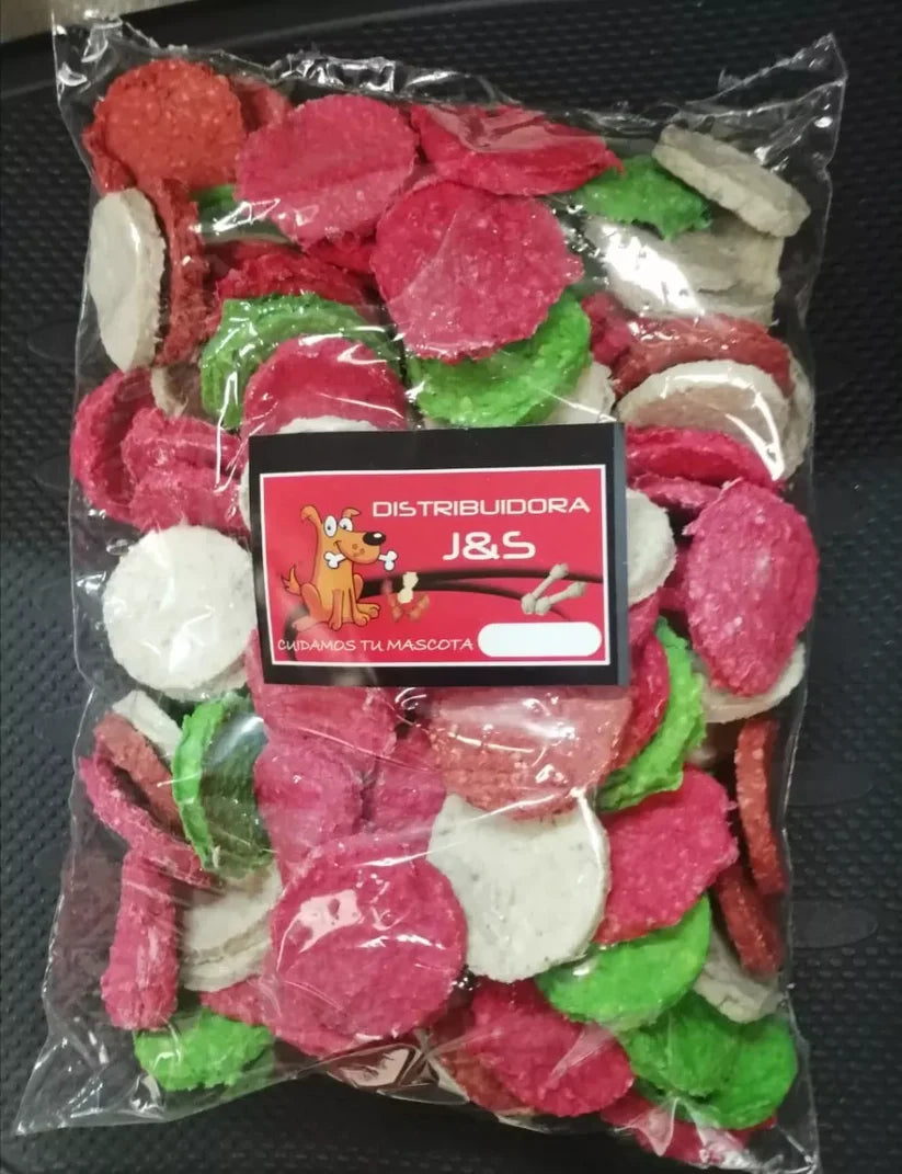 Paquete de Galletas Surtidas de carnaza por 1 Kilo, con todos los requerimientos nutricionales que tu mascota necesita.